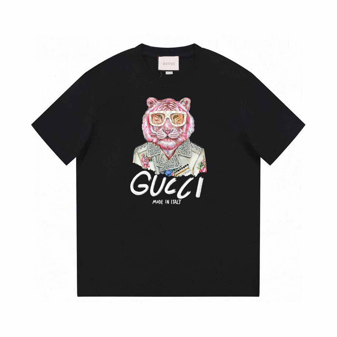 G*CCl tiger motif black T-shirt 260克